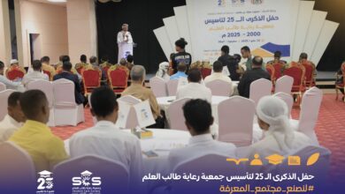 احتفلت جمعية رعاية طالب العلم بمدينة المكلا اليوم، بالذكرى الخامسة والعشرين لتأسيسها، في حفل أُقيم برعاية كريمة من السلطة المحلية…