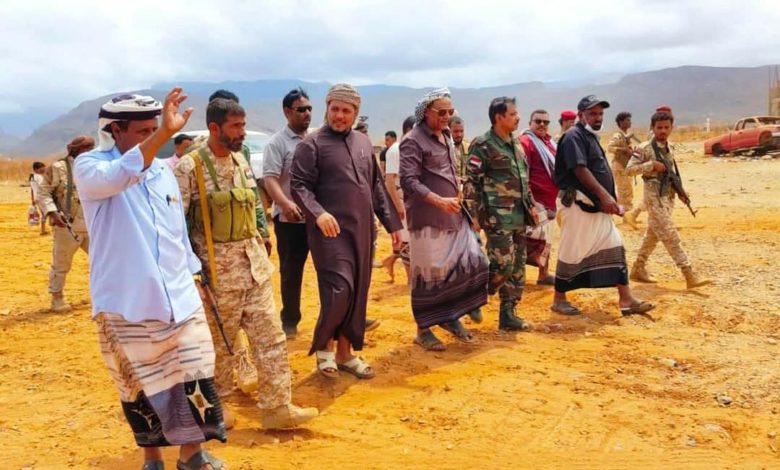 رافق المحافظ في زيارته قائد اللواء مشاه أول بحري العميد عبد الله أحمد عبد الله، ومدير عام فرع الهيئة العامة للأراضي والمساحة والتخطيط العمراني الأخ/ محمد سعد جمعان، ومدير عام الأشغال العامة والطرق الأستاذ/ عبد السلام الجمحي، والشخصية السياسية والإجتماعية سالم داهق .