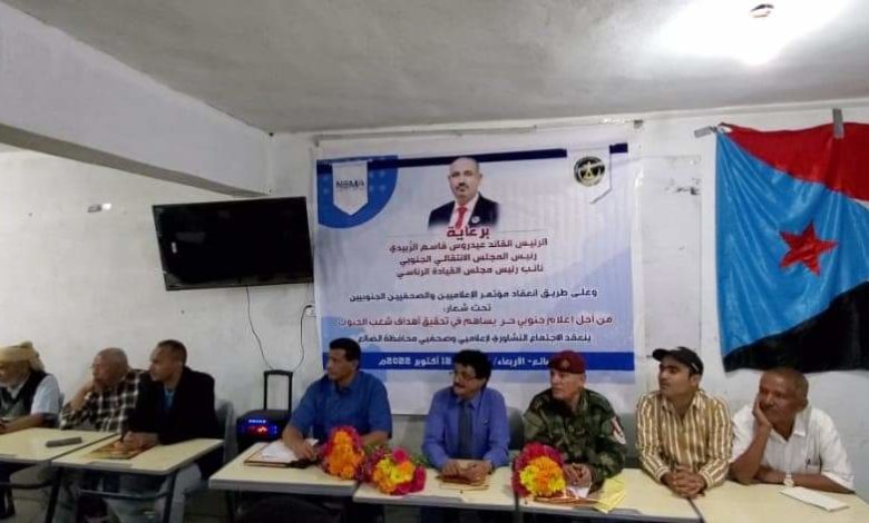برعاية الرئيس القائد عيدروس قاسم الزبيدي رئيس المجلس الانتقالي الجنوبي نائب رئيس مجلس القيادة الرئاسي عقد صباح اليوم الأربعاء بمحافظة الضالع اللقاء التشاوري لإعلاميي وصحفيي المحافظة تحت شعار (من أجل إعلام جنوبي حر يساهم في تحقيق أهداف شعب الجنوب).