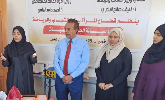 دشن الأخ/نعمان شاهر مستشار وزير الشباب والرياضة صباح اليوم بمقر قطاع المرأة التابع للوزارة بمديرية المنصورة بالعاصمة عدن دورة تدريبية لصيانة الجوال وبرمجته التي نظمها المركز لعدد عشرين فتاة لتأهيلهن وحماية خصوصيتهن من أعمال الابتزاز والقرصنة الإلكترونية.