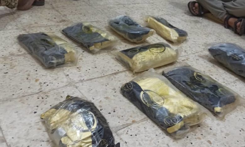 وقال مدير شرطة كريتر العقيد نبيل عامر بان الاجهزة الامنية التابعة لشرطة كريتر، عثرت على 9 كيلو حشيش مغلفة بطريقة محكمة باكياس سوداء ولواصق، موجودة بالقرب من سواحل مديرية كريتر.