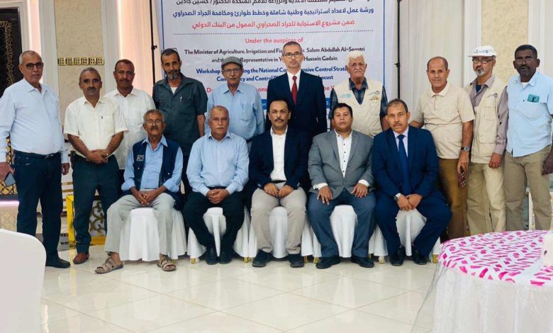 تطرقت ورشة العمل بإعداد إستراتيجية وطنية شاملة وخطط الطوارئ ومكافحة الجراد الصحراوي ضمن مشروع الاستجابة للجراد الصحراوي في اليمن ، حيث شارك في هذه الورشة عدد ١٢ من المختصين والخبراء بعمل الجراد الصحراوي ومتخذي القرار من الوزارة والوقاية الذي ستستمر لمدة خمسة ايام.