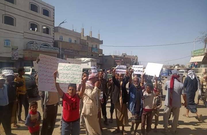 احتجاجات تطالب بالتحقيق في سرقة مقطورات غاز في احدى محطات ريف تعز