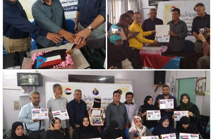 نظمت القيادة المحلية للمجلس الانتقالي الجنوبي في المعلا بالعاصمة عدن، اليوم، حفلا تكريمي لمديري المدارس في المديرية