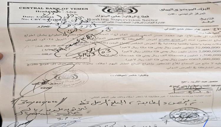 1. يطالب محافظ البنك المركزي اليمني بتقديم إيضاح رسمي وشامل حول طبيعة المشاركة، الجهات المنظمة، وهوية من طلب العملية، وأسباب إخراج هذا المبلغ بهذه الطريقة.