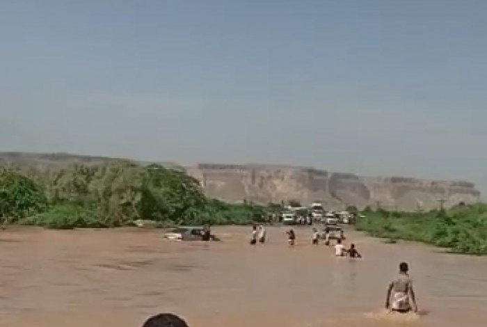 جرفت السيول سيارة، منذ قليل، على جسر العقاد بين مديريتي القطن وشبام بوادي حضرموت.