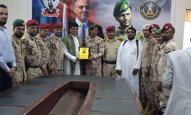 قائد اللواء الأول دعم وإسناد يكرم عضو هيئة رئاسة الانتقالي باكريت بدرع اللواء