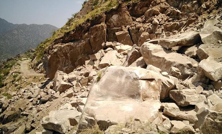 تفقد أمين عام المجلس المحلي لمديرية يافع رُصد الأستاذ عادل علي سبعه ظهر اليوم الخميس 11نوفمبر 2021م الأضرار التي أحدثتها الانهيارات الصخرية في طريق العوارض التي تربط مديريتي رصد وسرار عبر جبل موفجة .