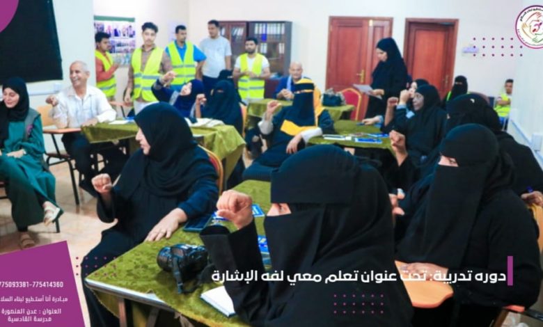 في اطار نشاطات المجلس التنسقي الاعلى لمنظمات المجتمع المدني بدات اليوم في مقر مؤسسة المستقلة بمديرية خورمكسر بالعاصمة عدن دوره تدريبيه تحت عنوان تعلم معي لغة الاشاره والتي تنظمها مبادرة انا استطيع لبناء السلام بمشاركة الجمعيات والمؤسسات والمبادرات المنظويه تحت قيادة المجلس التنسقي والتي تستمر على مدى سبعة ايام