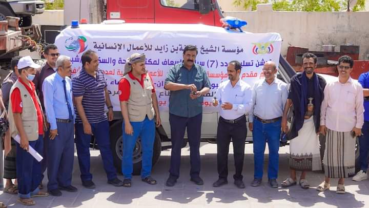 الدكتور علي ناصر الذئب مدير عام مكتب الصحة والسكان بالمحافظة عبر عن شكره للأشقاء في الإمارات عبر ذراعها الخيري مؤسسة الشيخ خليفة ولقيادة السلطة المحلية برئاسة المحافظة ابن الوزير لاستكمال تجهيزات المرحلة الأولى لدعم القطاع الصحي بتقديم سيارات إسعاف الاخلاء الطبي للمستشفيات المحورية (شبوة للأمومة، عزان، عرماء ،والدفيعة بيحان).