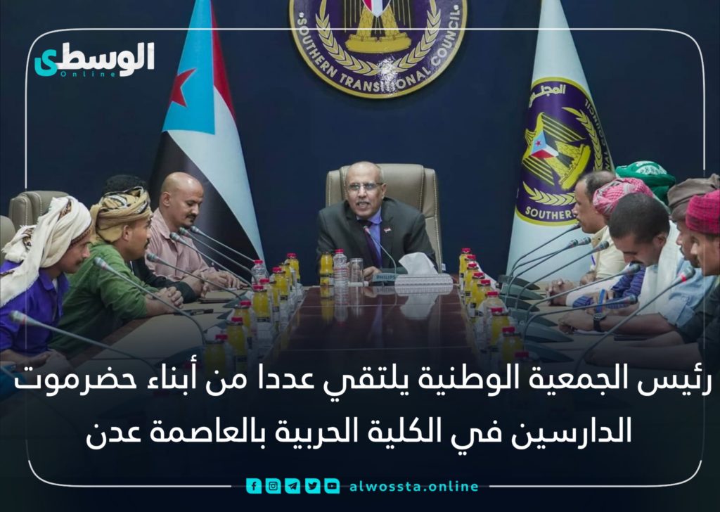 رئيس الجمعية الوطنية يلتقي عددا من أبناء حضرموت الدارسين في الكلية الحربية بالعاصمة عدن