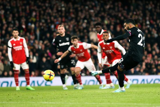 وسجل بنجامين وايت مدافع آرسنال أهداف وست هام، بالخطأ في مرمى فريقه بالدقيقة 16، لينتهي الشوط الأول بتقدم أصحاب الأرض بهدف نظيف.