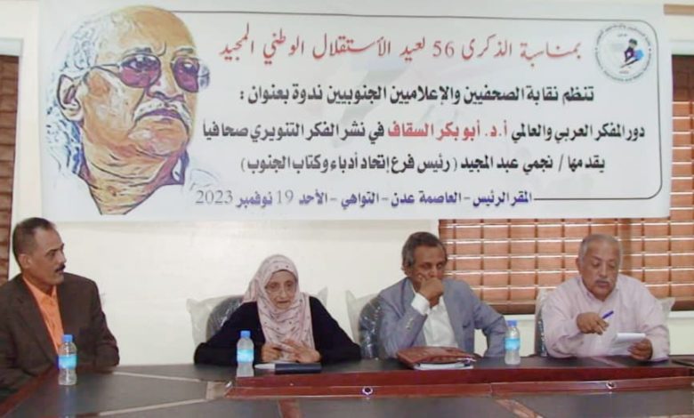 نقابة الصحفيين والإعلاميين الجنوبيين تنظم ندوة بعنوان المفكر العربي أبوبكر السقاف