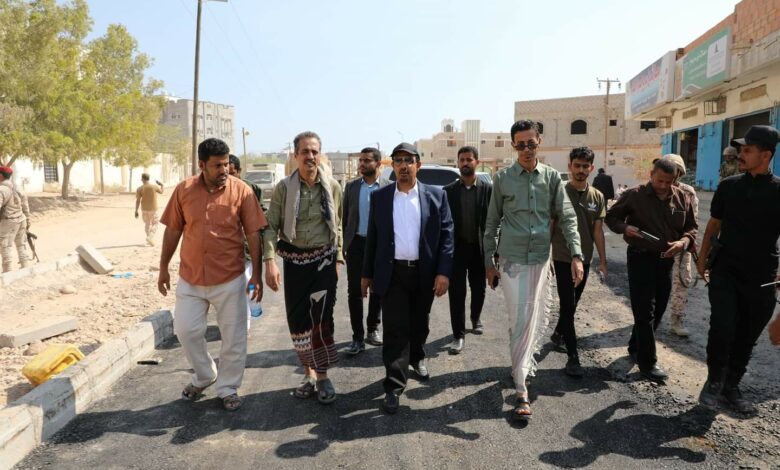 محافظ حضرموت يتفقد أعمال البدء بسفلتة شارع الشيخ خليفة بالمساكن بفوة بطول 2 كيلو و200 متر