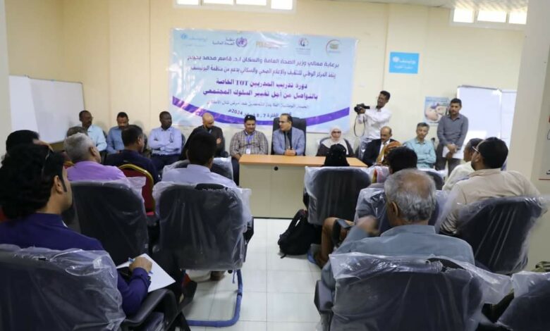 وكانت دورة المدربين الخاصة بحملة التحصين ضد مرض شلل الأطفال التي نفذها المركز الوطني للتثقيف والإعلام الصحي والسكاني بالتعاون مع منظمتي الصحة العالمية واليونيسيف قد اختتمت اليوم بالعاصمة عدن بعد يومين من الفعاليات التدريبية التي استهدفت 30 كادرا من مدراء ومنسقي التثقيف الصحي بالمحافظات المحررة.