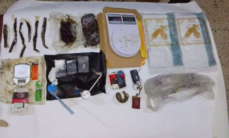 مكافحة المخدرات بساحل حضرموت تضبط عصابة ترويج للمخدرات بحوزتهم قرابة 3 كيلو جرام من الحشيش وكمية من الشبو
