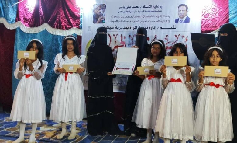 أقامت إدارة تنمية المرأة بمديرية سيحوت، يوم أمس الجمعة، في حديقة “السايتك” بمجمع سيحوت الدولي، فعالية “أمسيات شهر الخير” الموسم الثالث، برعاية الأستاذ محمد علي ياسر محافظ محافظة المهرة، وإشراف السلطة المحلية بمديرية سيحوت، والإدارة العامة لتنمية المرأة بالمحافظة.