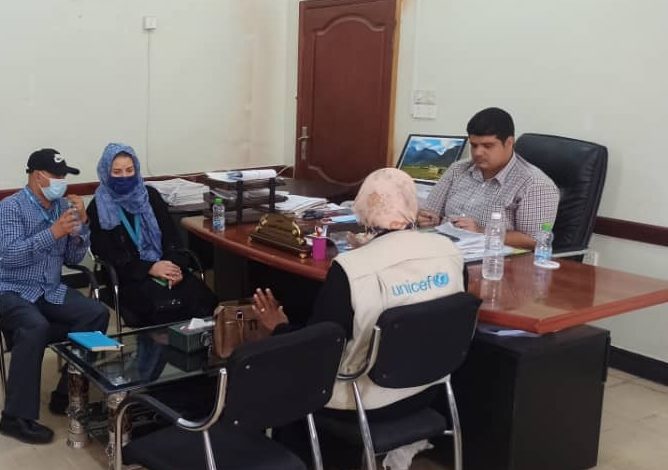 حضر اللقاء مسؤول الطواري د. مختار صالح مكتب اليونيسف عدن مسؤول الحماية مجيب سلطان مكتب عدن ضابط الحماية. جيسيكا دكسون مكتب عدن د.فوزية غرامة مدير مكتب اليونسيف محور حضرموت.