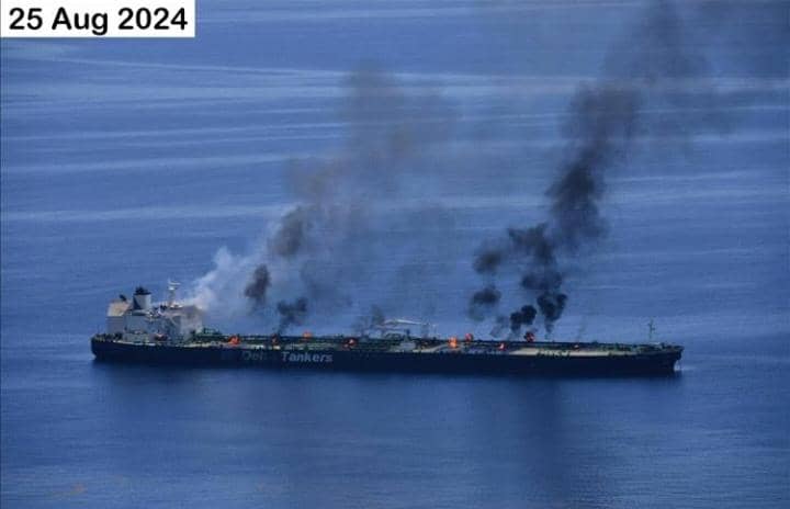 فقد كشفت بعثة الاتحاد الأوروبي البحرية في البحر الأحمر “أسبيدس” أن النيران لا تزال مشتعلة في السفينة التي ترفع العلم اليوناني منذ 23 أغسطس”. وأوضحت في بيان نشرته اليوم الاثنين على حسابها في منصة إكس، أن حرائق اندلعت في 5 مواقع على الأقل على السطح الرئيسي للسفينة.