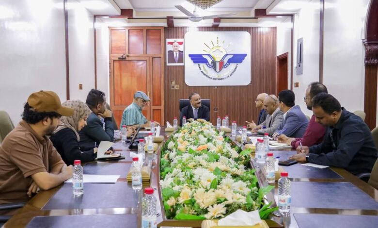 ترأس معالي وزير النقل الدكتور عبدالسلام صالح حُميد، اليوم، إجتماع، بالهيئة العامة للطيران المدني والأرصاد بالعاصمة عدن،ضم وكيل الهيئة المهندس محمد ناشر والوكيل المساعد لقطاع السلامة الكابتن محمد مقبل ومدراء عموم الهيئة ومطار عدن الدولي،كرس لمناقشة أوضاع الهيئة و سير العمل فيها.