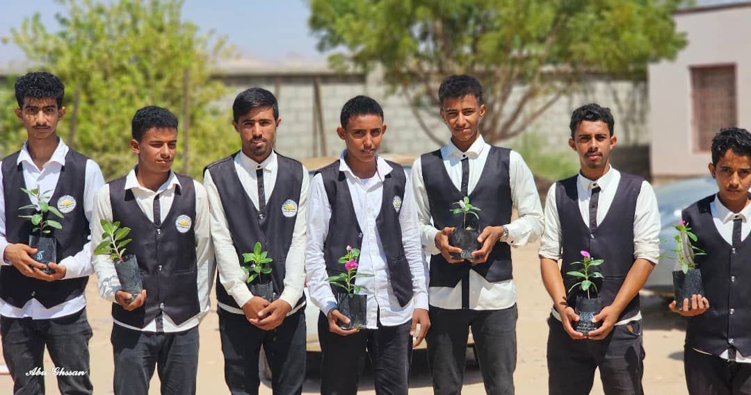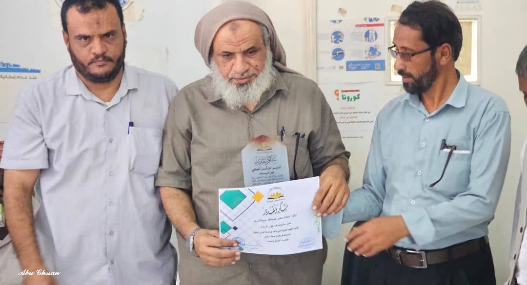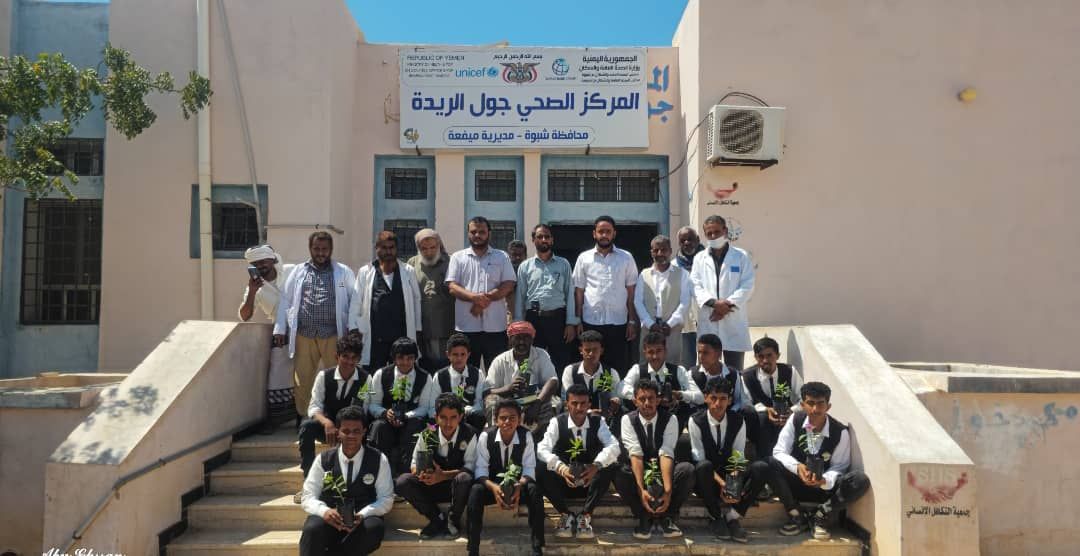مدرسة المتميزين تغرس في المركز الصحي بمديرية جول الريدة 15 شجرة وتكرم طاقم المركز