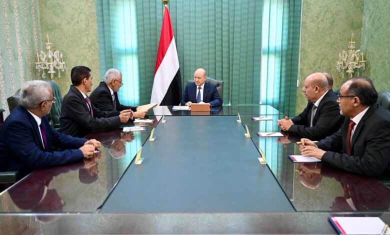 رئيس مجلس القيادة يتسلم مسودة القواعد المنظمة لأعمال المجلس وهيئة التشاور والمصالحة والفريقين القانوني والاقتصادي