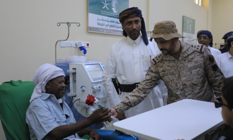وكيل أول المهرة وقائد قوة الواجب دعم واسناد بالتحالف يزوران مرضى مركز الغسيل الكلوي بمناسبة عيد الفطر