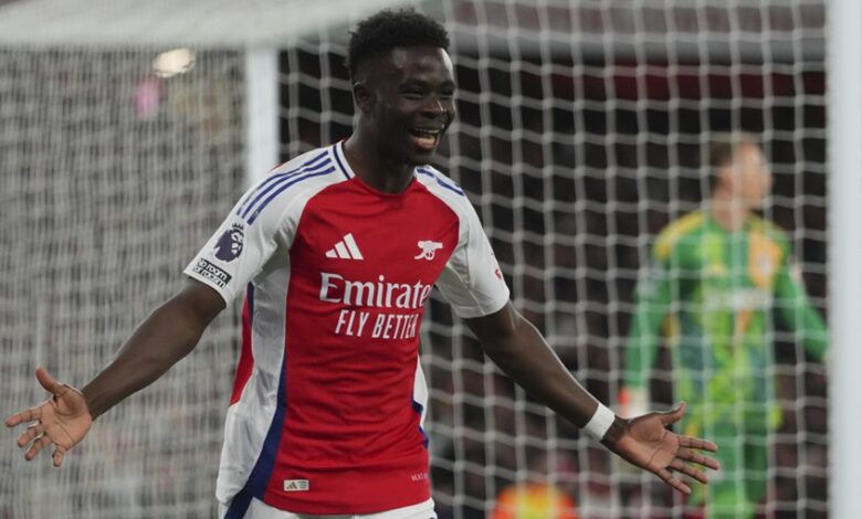 وكانت هذه المباراة الأولى التي يشارك فيها ساكا بعد تعافيه من إصابة بأوتار الركبة، والتي أبعدته عن الملاعب منذ ديسمبر الماضي.