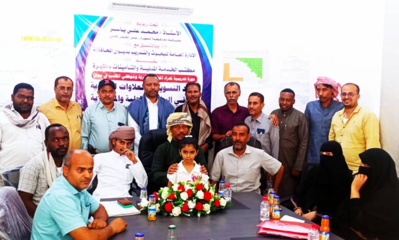 وفي فعالية اختتام الدورة التي حضرها محمد احمد شملان مدير الإدارة العامة للبحوث والتدريب ، أكد مدير عام مكتب الخدمة المدنية والتأمينات بالمهرة الاستاذ عبدالحكيم احمد التميمي ان الدورة التدريبية أقيمت لتعزيز قدرات وكفاءة العاملين في مجال التسويات والعلاوات السنوية ، والحمد لله الدورة حققت النجاح المطلوب ، وكما حققنا المركز الثاني على مستوى الجمهورية نريد إنجاز سريع في مجال إعداد التسويات والعلاوات والنجاح شعارنا باذن الله تعالى ، وقدم شكره لوزارة الخدمة المدنية والتأمينات والسلطة المحلية بالمحافظة ممثلة بالاستاذ محمد علي ياسر محافظ محافظة المهرة ، وإدارة البحوث والتدريب بالمحافظة .
