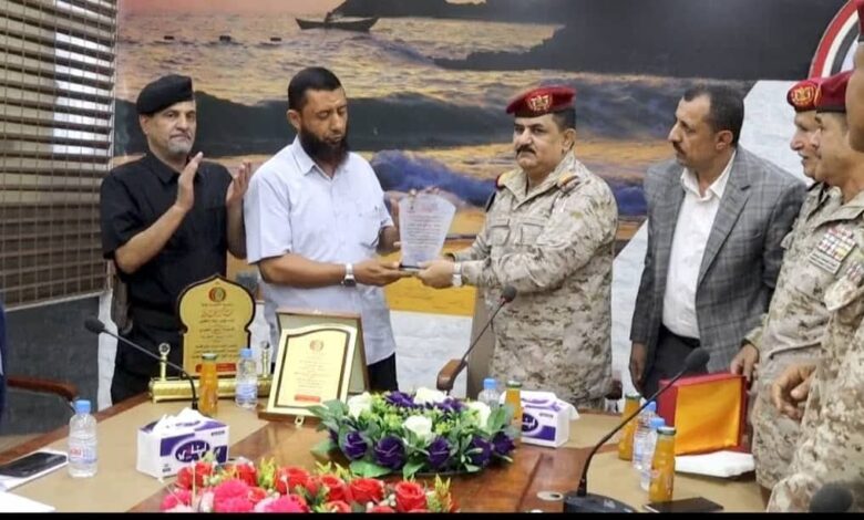 وقدم وزير الدفاع للعميد العمري درعا تكريميا تقديرًا لجهوده وإسهاماته الفاعلة خلال فترة توليه إدارة فرع المؤسسة بعدن.