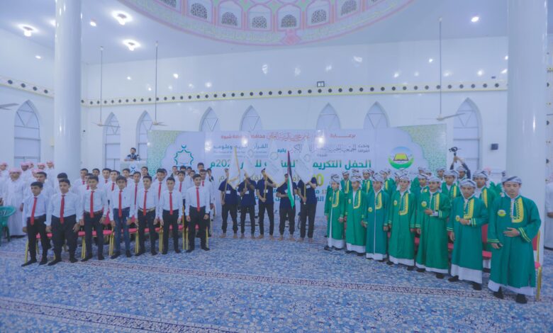 برعاية المحافظ ابن الوزير شبوة تحتفي بتخريج 30 حافظًا للقرآن الكريم وتكريم 179 طالبًا متميزًا في حفل قرآني كبير