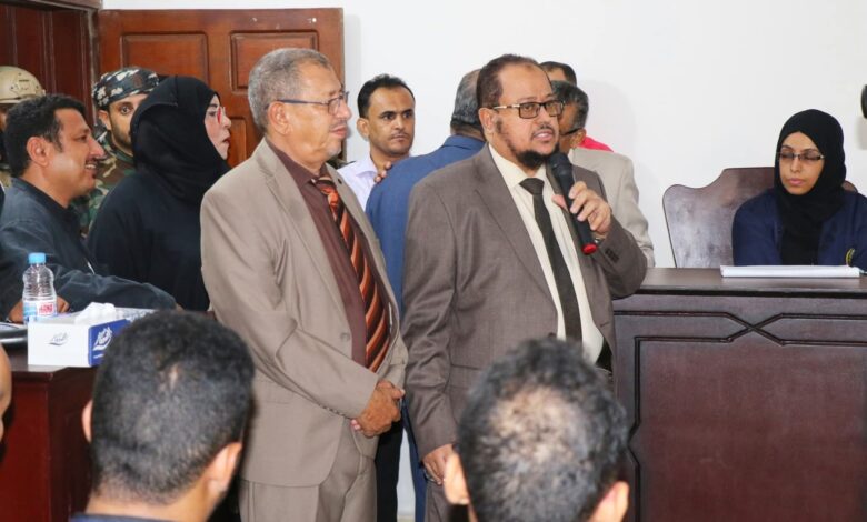 رئيس مجلس القضاء الأعلى ووزير العدل يدشنان المحاكمات الصورية لطلاب المعهد العالي للقضاء بعدن