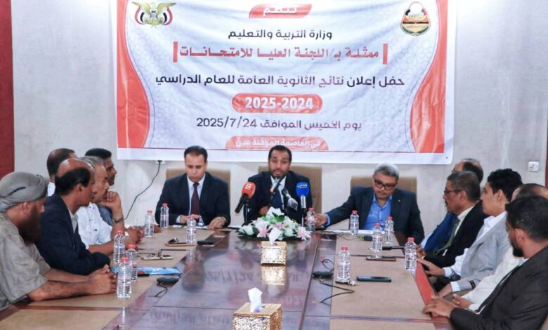 أعلنت وزارة التربية والتعليم، اليوم بالعاصمة المؤقتة عدن، نتائج اختبارات شهادة الثانوية العامة بقسيمها العلمي والأدبي للعام الدراسي ٢٠٢٥/٢٠٢٤م بنسبة نجاح بلغت ٨٤,١٠%. وخلال حفل إعلان نتائج الثانوية العامة الذي نظمته اللجنة العليا للاختبارات، نقل وزير التربية والتعليم الأستاذ طارق سالم العكبري تحيات وتهاني ومباركة فخامة رئيس مجلس القيادة الرئاسي الدكتور رشاد العليمي، ودولة رئيس مجلس الوزراء الدكتور سالم صالح بن بريك، لجميع الطلاب والطالبات الذين حققوا نتائج متقدمة في نتيجة شهادة الثانوية العامة للعام ٢٠٢٥/٢٠٢٤م على مستوى المحافظات في عموم الوطن، متمنياً لهم دوام التوفيق والنجاح في مشوارهم التعليمي. وأشار الوزير العكبري إلى أن العملية التربوية والتعليمية رغم كل الظروف يجب أن تكون بعيدة عن أي صراعات وأن التعليم للجميع، مشيداً في ذات السياق بالجهود الجبارة التي بذلتها اللجنة العليا للاختبارات وكافة لجانها الفرعية بمكاتب التربية وبمساندة من السلطات المحلية بالمحافظات الذي أسهم في إنجاح سير العملية الاختبارية رغم الظروف الاستثنائية التي تمر بها البلاد. كما وجه الوزير القطاعات المختصة بديوان الوزارة بعمل تقييم شامل لأي ظواهر سلبية رافقت عملية الاختبارات الوزارية والعمل على معالجتها خلال الأعوام المقبلة.