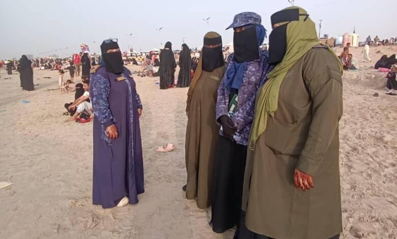 الشرطة النسائية تواصل انتشارها الميداني على سواحل المكلا خلال موسم البلدة