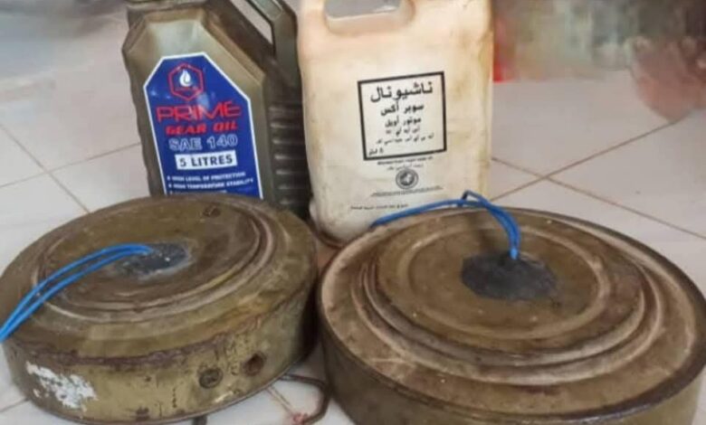قوات دفاع شبوة تتمكن من نزع وتفكيك عبوات ناسفة زرعتها العناصر الارهابية بمنطقة المصينعة