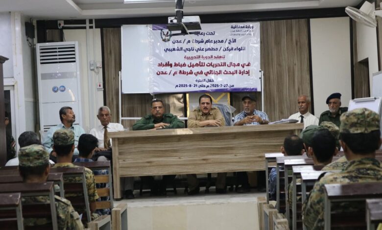 تدشين دورة تدريبية في مجال التحريات لمنتسبي البحث الجنائي بأمن العاصمة عدن