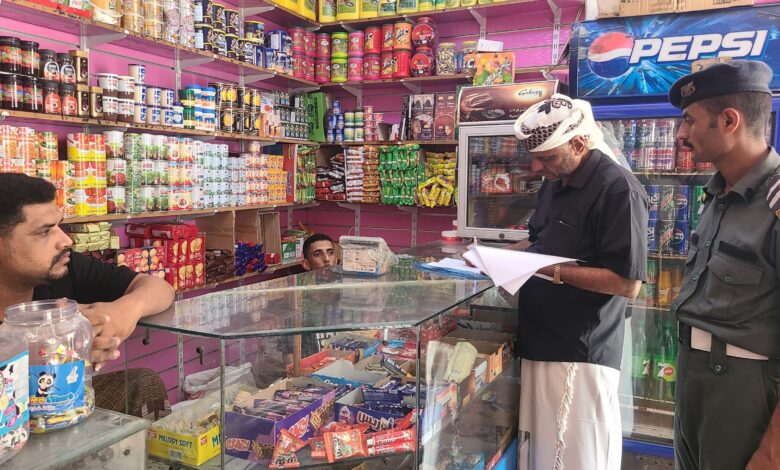 الأجهزة الأمنية بساحل حضرموت تساند جهود مكتب التجارة لضبط المخالفين من أصحاب المحال التجارية