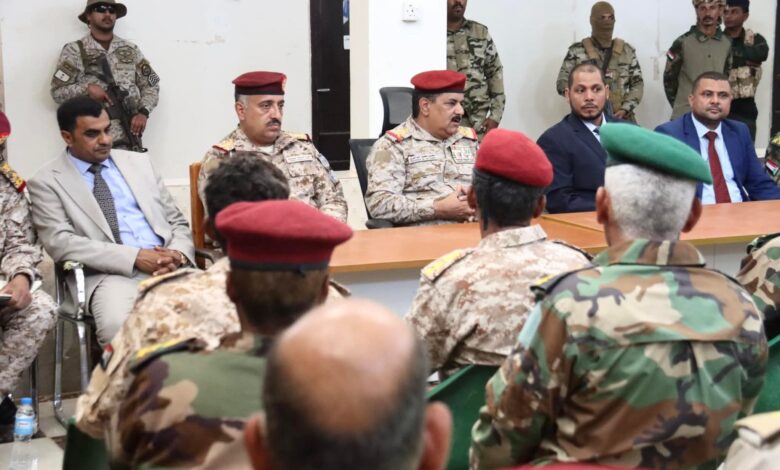 كما عقد وزير الدفاع، اجتماعاً موسعاً بقيادة وضباط اللواء الاول مشاه بحري، استمع خلاله الى أوضاع اللواء وهموم واحتياجات منتسبيه، والتحديات التي تواجههم..مؤكداً على توحيد كافة الجهود وحشد الطاقات لمواجهة العدو المتربص باليمنيين جميعاً ممثلا بمليشيات الحوثي الإرهابية المدعومة من النظام الايراني.. لافتاً الى جرائمها واستهدافها للمنشآت الحيوية والموانئ النفطية وتدميرها الممنهج للاقتصاد الوطني.
