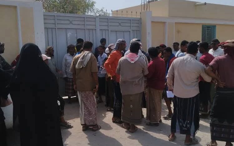 معلمو الشحر يحتجون أمام مكتب التربية على توقيف راتب أغسطس