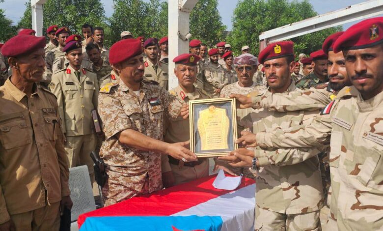 وتم تكريم الخريجين بالدروع والحوافز نظير تفوقهم المشرف الذي يمثل إضافة نوعية لمسيرة قواتنا ويجسد صورة مشرفة لمنتسبي اللواء الخامس دعم وإسناد في مختلف المراحل .