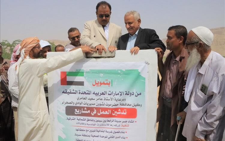 قام وكيل محافظة حضرموت لشئون مديريات الوادي والصحراء الأستاذ عامر سعيد العامري اليوم الأربعاء الموافق 1 أكتوبر 2025 م، بوضع حجر الأساس لعدد من المشاريع التنموية في مديرية سيئون، بتمويل دولة الإمارات العربية المتحدة الشقيقة.