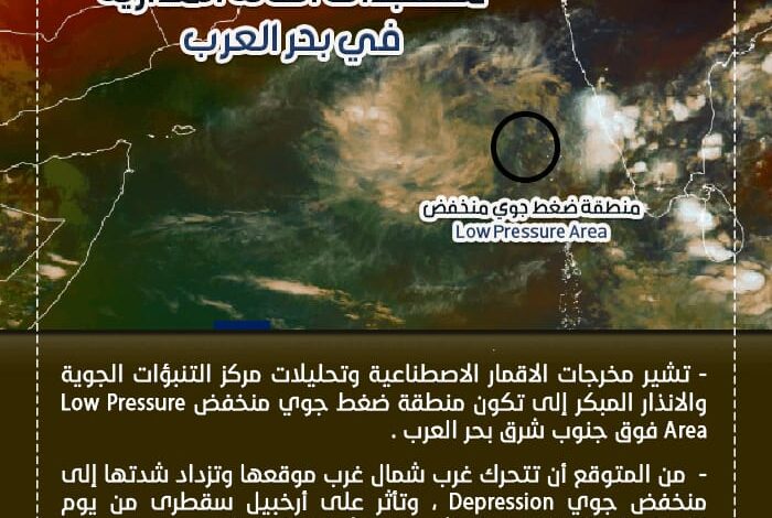 الأرصاد الجوية تكشف عن تكون منطقة ضغط جوي منخفض فوق جنوب شرق بحر العرب