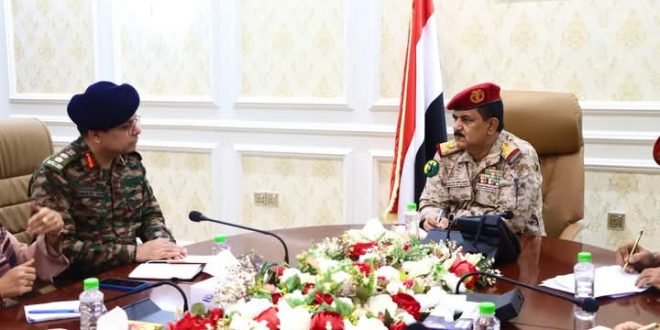بحث وزير الدفاع، الفريق الركن محسن الداعري، الخميس ، في العاصمة عدن، الملحق العسكري بالسفارة الهندية لدى اليمن، العقيد الركن سارابجيت سينغ، تعزيز التعاون المشترك بين البلدين الصديقين.