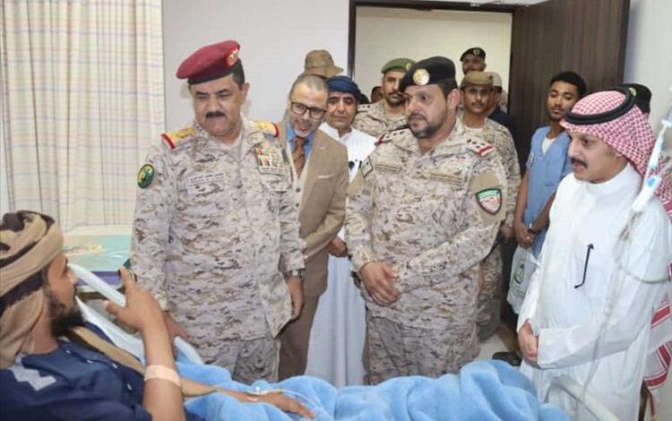 زار وزير الدفاع الفريق الركن محسن الداعري ومعه قائد التحالف في عدن العميد الركن ماجد الحربي اليوم قائد اللواء الخامس حماية رئاسية العميد الركن عدنان رزيق الى المستشفى للاطمئنان على حالته الصحية بعد إصابته في الحادث الإرهابي الجبان الذي استهدف موكبه غرب تعز.
