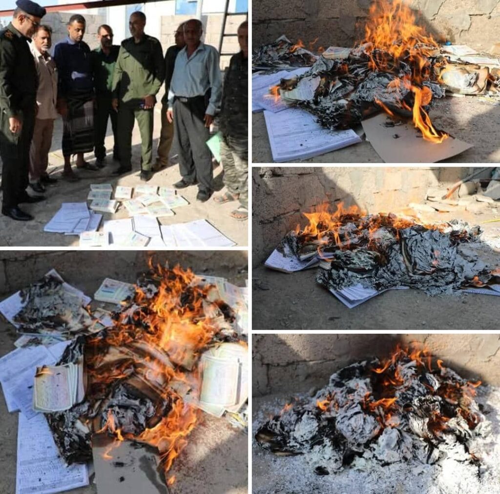 رئاسة مصلحة الأحوال المدنية بعدن تتلف أوراقاً ثبوتية ضبطت أثناء تهريبها من مناطق ميليشيات الحوثي الارهابية