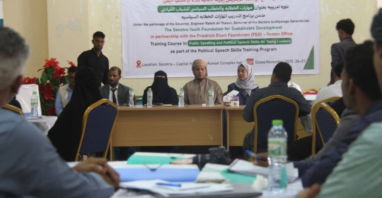اختتم محافظ أرخبيل سقطرى المهندس رأفت الثقلي، اليوم، فعاليات الدورة التدريبية في مهارات الخطابة والخطاب السياسي للشباب القيادي، التي نُفذت بالشراكة بين مؤسسة فريدريش إيبرت الألمانية مكتب اليمن و مؤسسة شباب سقطرى للتنمية المستدامة، وبمشاركة 26 شاباً وشابة من القيادات الشبابية بالمحافظة.