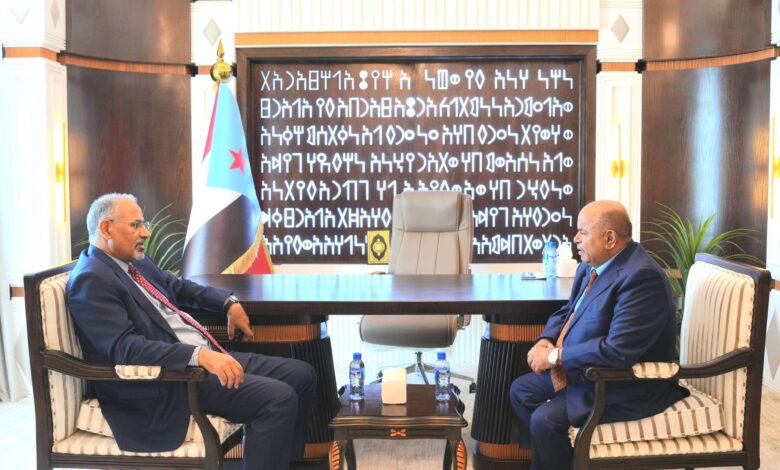 الرئيس القائد الزُبيدي يلتقي محافظ حضرموت الجديد سالم الخنبشي