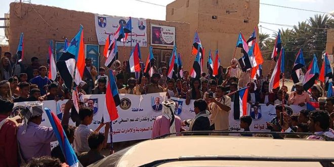 نظمت القيادة المحلية للمجلس الانتقالي الجنوبي في مديرية رضوم بمحافظة شبوة، يوم السبت، مسيرة جماهيرية حاشدة، احتفالاً بالانتصارات التي حققتها القوات المسلحة الجنوبية في عارين بشبوة، ومديريات وادي وصحراء حضرموت.