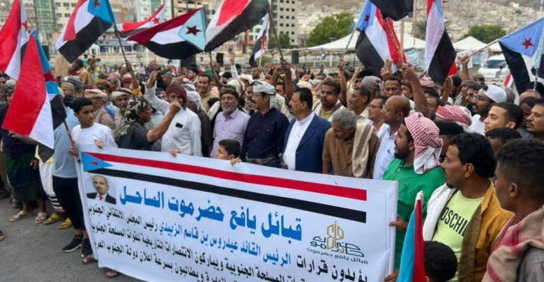 من جانبهم، أكد أبناء قبائل يافع بساحل حضرموت وقوفهم الكامل خلف القيادة السياسية الجنوبية، ممثلة بالرئيس القائد عيدروس بن قاسم الزُبيدي، رئيس المجلس الانتقالي الجنوبي، مطالبين بالإسراع في إعلان دولة الجنوب العربي.