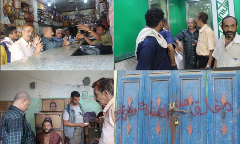 الصناعة بالعاصمة عدن تغلق محلات تجارية وصرافة بالشيخ عثمان